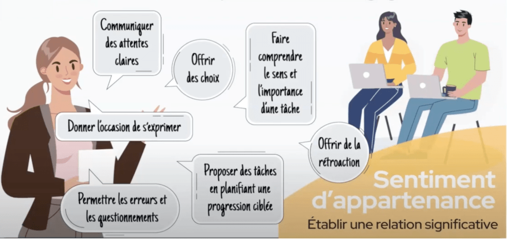 Donner des rétroactions est crucial également, et des rétroactions qui ne soient pas négatives ni qui dévaluent. On ne peut pas enseigner par l’évaluation, mais en dressant un véritable plan d’apprentissage.