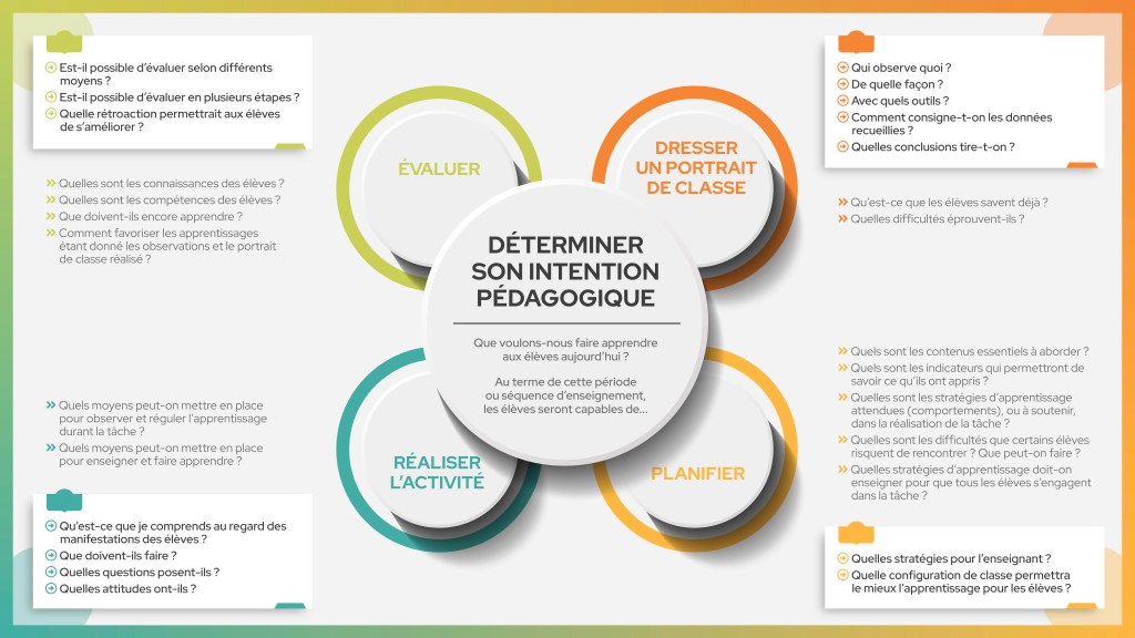 L’intention pédagogique est au coeur de notre enseignement : que voulons-nous faire apprendre aux élèves aujourd’hui ? L’acuité pédagogique et didactique de l’enseignant entre en jeu pleinement.