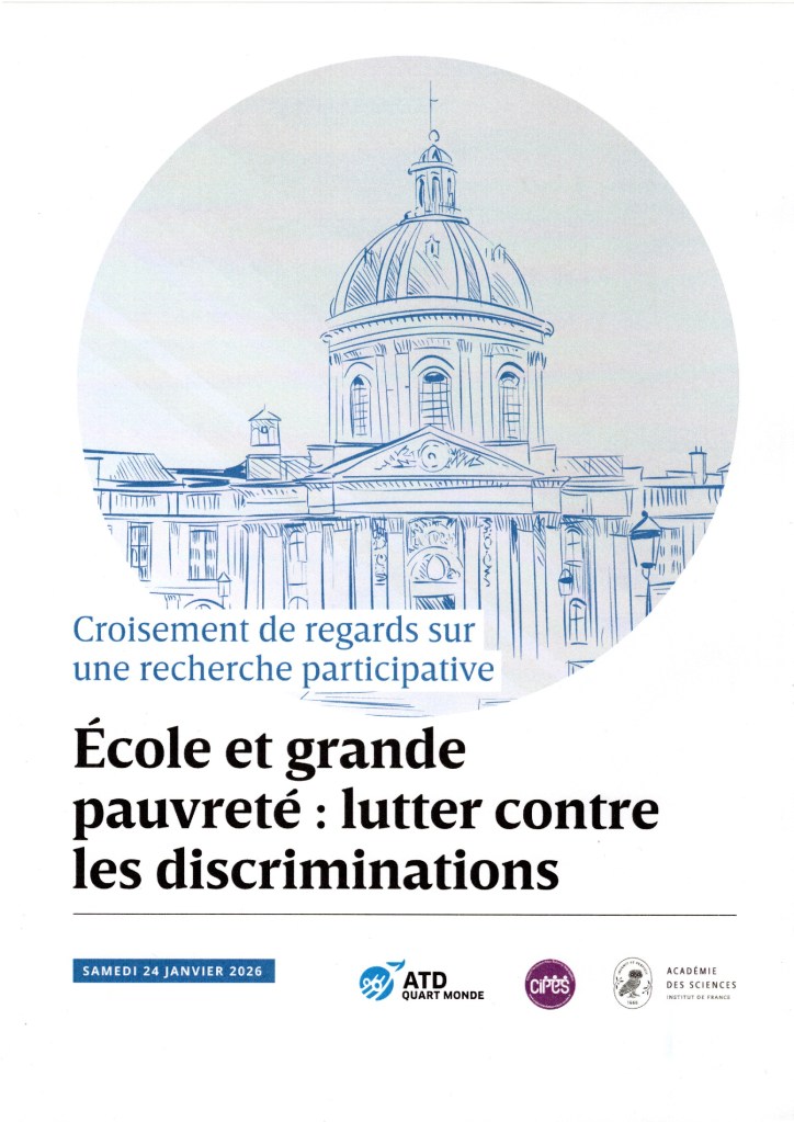 ATD Quart Monde a organisé, samedi 24 janvier 2026, une journée intitulée : « École et grande pauvreté : lutter contre les discriminations – Croisement de regards sur une recherche participative ». Elle s’est déroulée à l’Académie des Sciences, par ailleurs engagée dans une réflexion de fond sur l’avenir de l’école à travers un groupe de travail dédié, piloté par l’académicienne Laure Saint-Raymond.