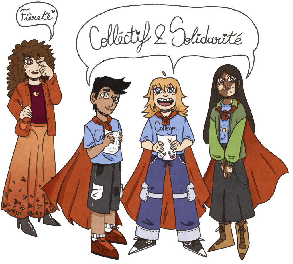 « Alors heuuu là c’est le dispositif ULIS, c’est pour les élèves qui zont des difficultés mais bon, en vrai tout le monde il a des difficultés à des moments, et donc c’est pour ça que tout le monde peut venir quand il a un problème. La prof elle accueille tout le monde, elle va pas dire « non, toi, tu viens pas là » parce qu’il est pas du dispositif. Elle est en mode elle va trouver des solutions, et tout. Et nous bah on est accueillant aussi passque nous c’est collectif et solidarité. C’est comme ça qu’on progresse, après. Sinon c’est pas possible, on n’y arrive pas. »
