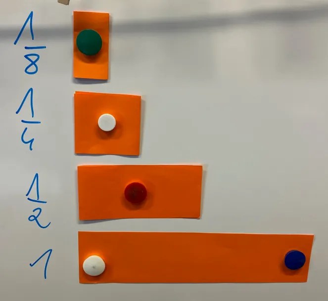 Vous trouverez sur cette page plusieurs versions de l’activité Bandes de fractions : l’activité déclinée dans des classes de cycle 2 et 3 à partir de 2025-2026, et l’activité antérieure, appuyée sur celle d’Ermel, conçue pour la MaMaN (la mallette à mathématiques de l’académie de Normandie).